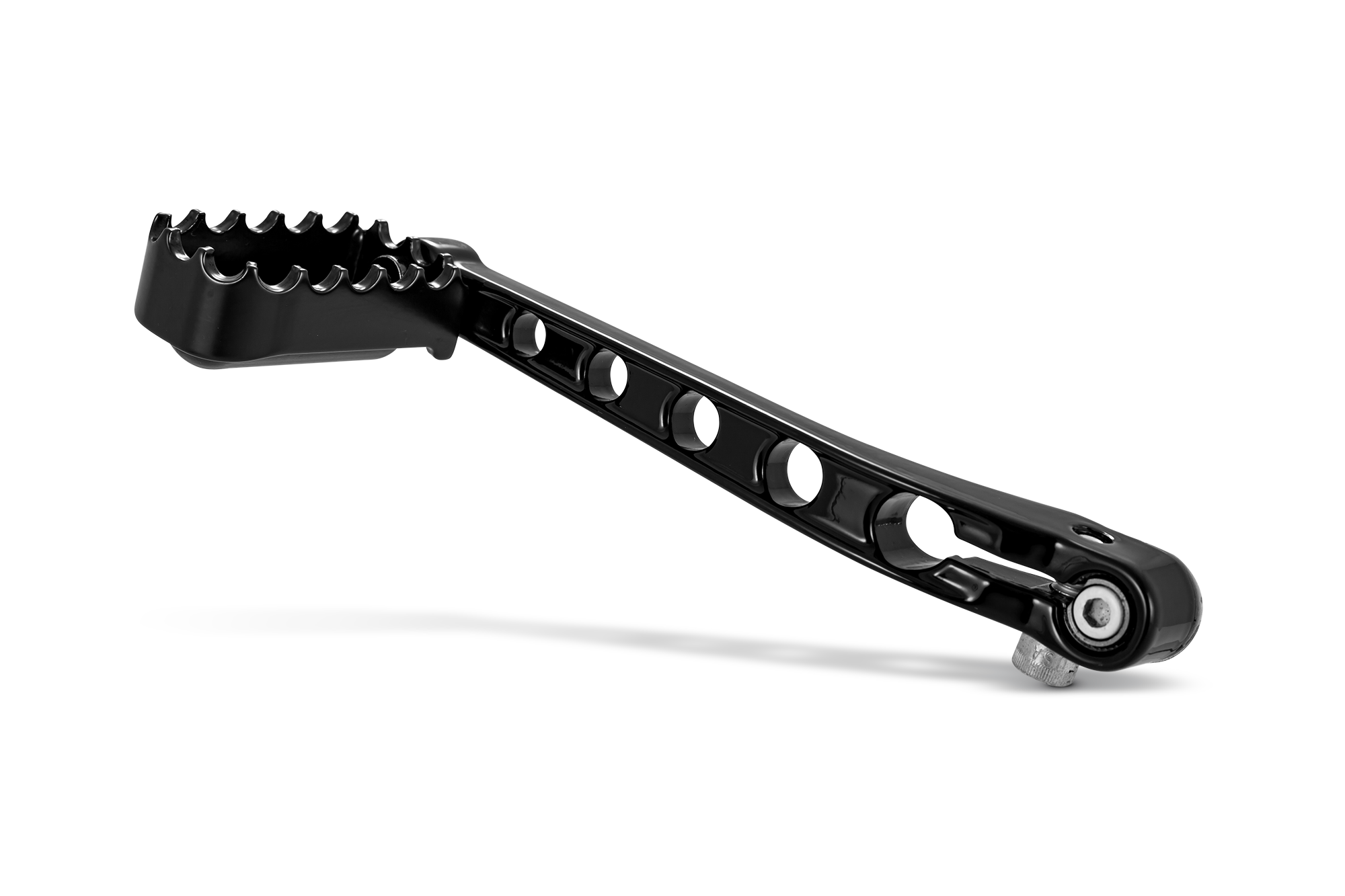 Dirt bike your Bagger! Burly has a killer MX Style Shifter Lever that is a perfect match to their MX Floorboards. The shifter arm is design with built-in teeth and a rubber toe pad. Made of real deal steel with a black powder coat finish. Fitment for 1997-2017 HD Floorboard models.